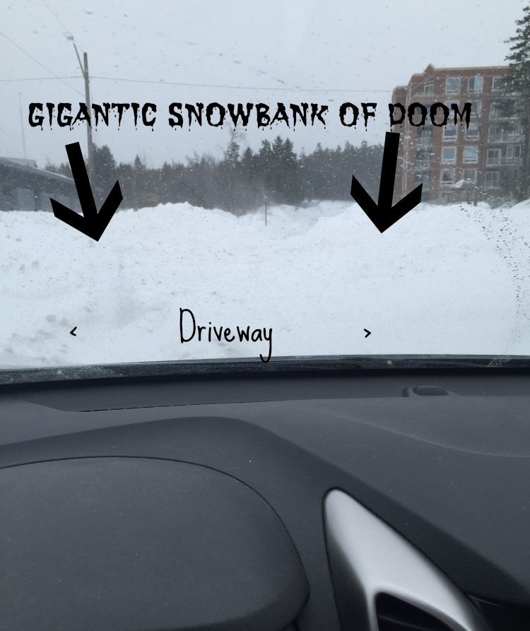 I had a panic attack – an actual panic attack – when I couldn’t get out of my apartment last week because the snow bank/drift in my parking garage driveway about four feet high and another four feet across. I even tried to shovel it out with a pitiful, plastic shovel that my parents gave to F for Christmas.